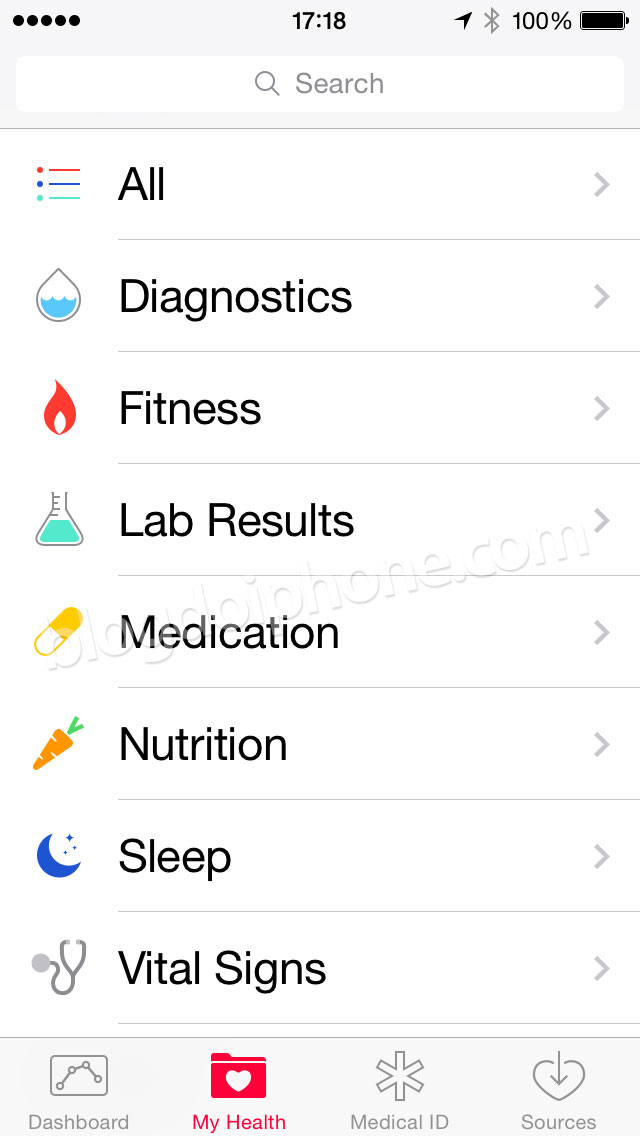 Aparentemente ainda inacabado, a Apple irá introduzir um organizador de informações de saúde no iOS, compatível com diversos dispositivos de medição. Sem tradução para o português no momento.