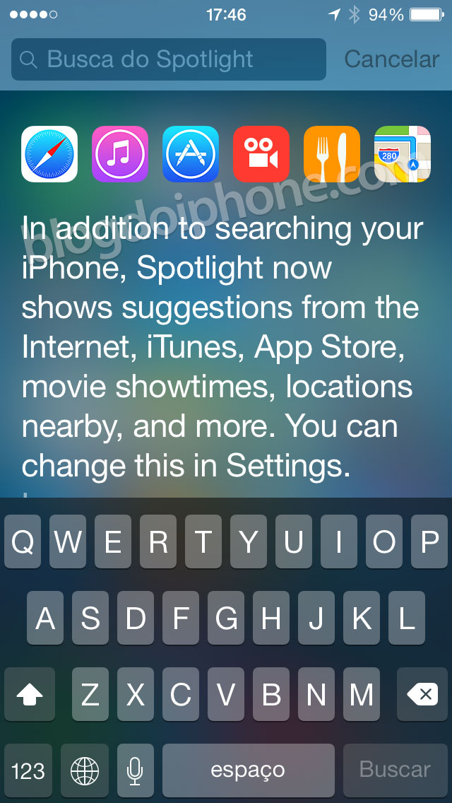 Ainda sem suporte para o português, o campo de buscas do sistema também fará sugestões de cinema, lugares para comer e outras coisas mais.